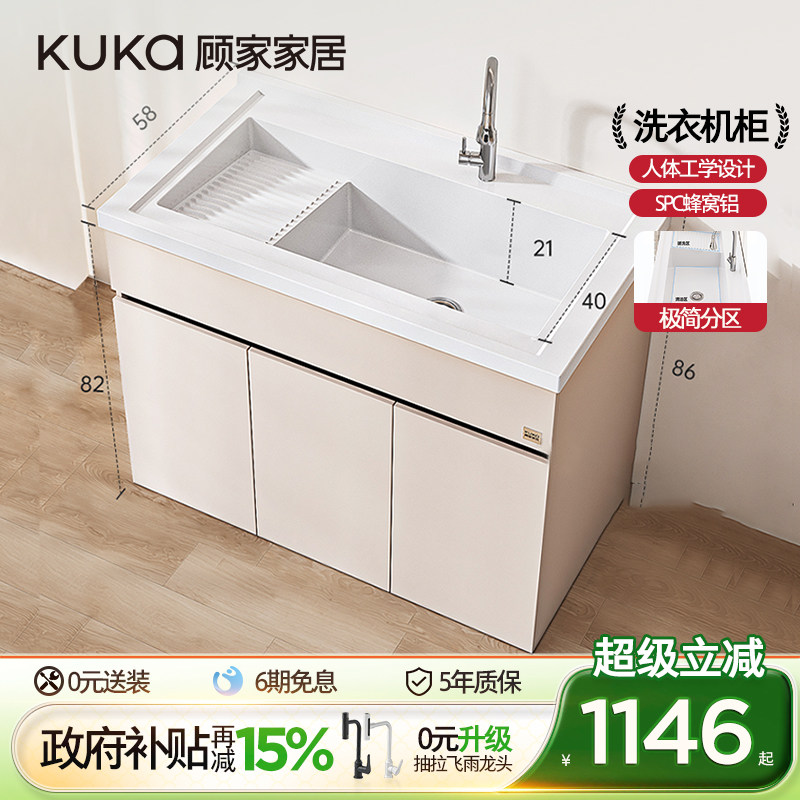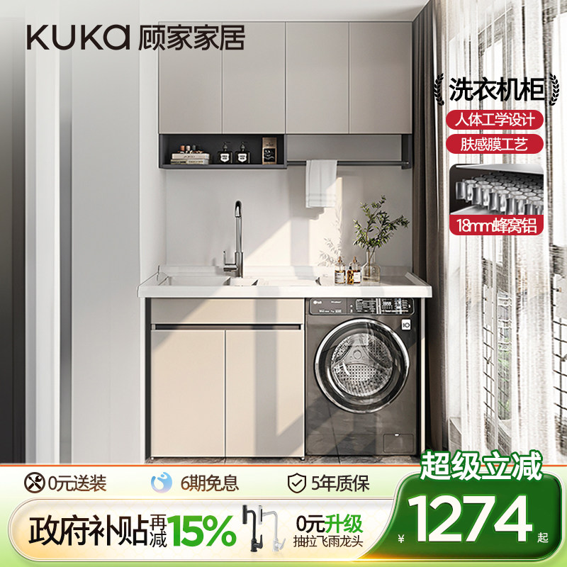 顾家家居极简风太空铝阳台洗衣机柜组合伴侣岩石一体柜带搓板脸盆