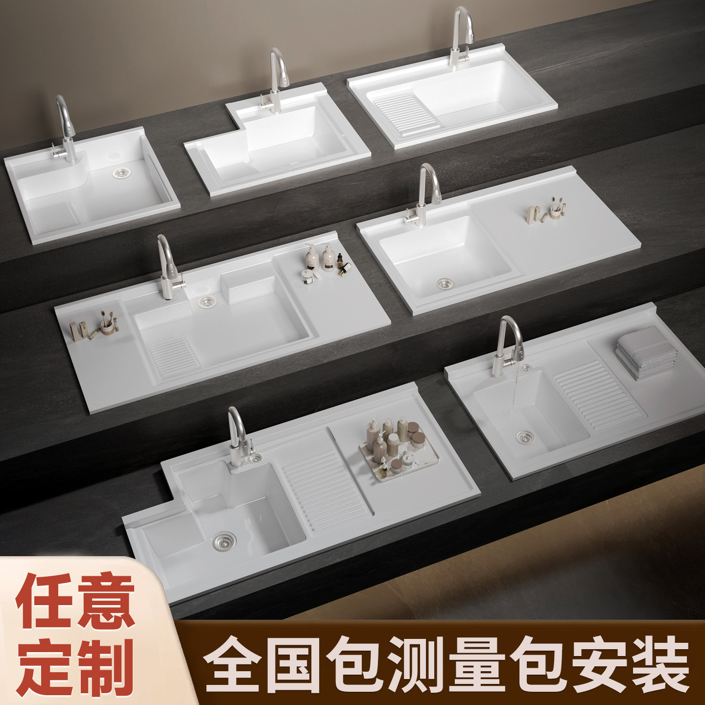 定制台盆洗衣池阳台家用石英石带搓板一体盆洗衣机柜组合切角水池