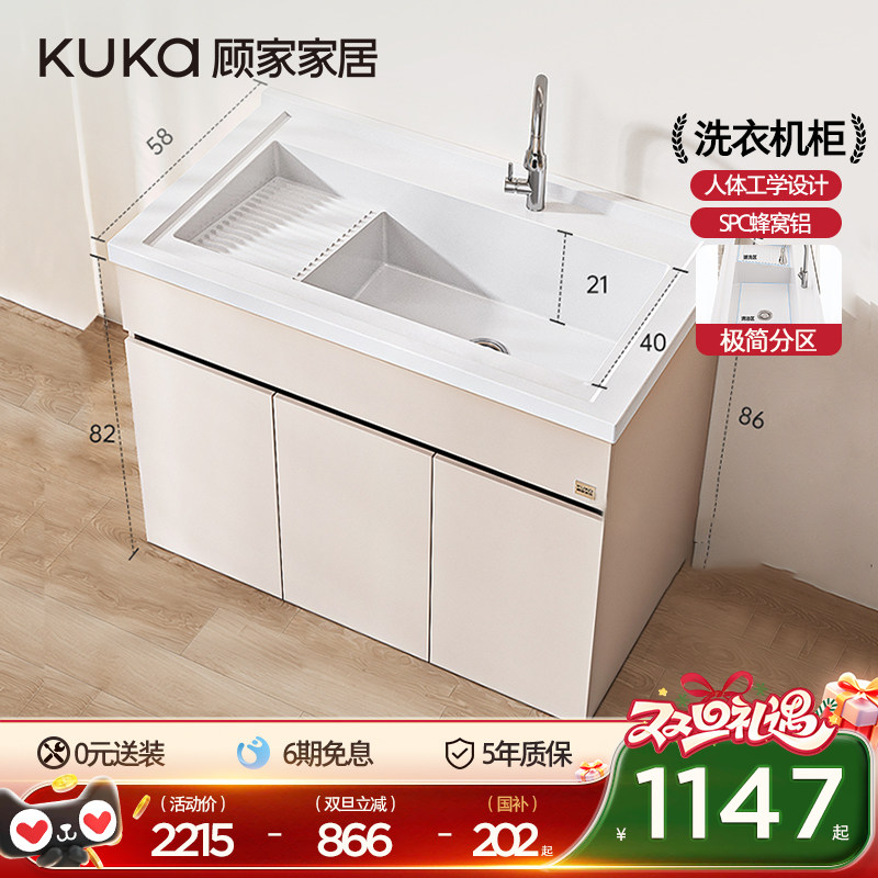 顾家家居蜂窝铝阳台洗衣机柜组合人造石一体池台带搓板洗衣柜伴侣