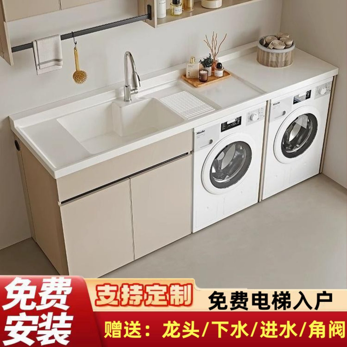 定制洗衣机一体柜带搓板洗衣池组合柜阳台洗衣柜滚筒伴侣轻奢简约