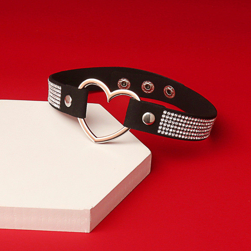 朋克风原宿软妹绒布黑色水钻烫钻桃心爱心形项圈女项链颈带锁骨链