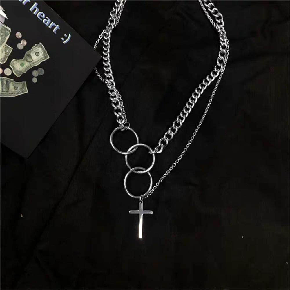 欧美ins潮原宿风嘻哈十字架合金吊坠组合多层次圆圈男女式项链