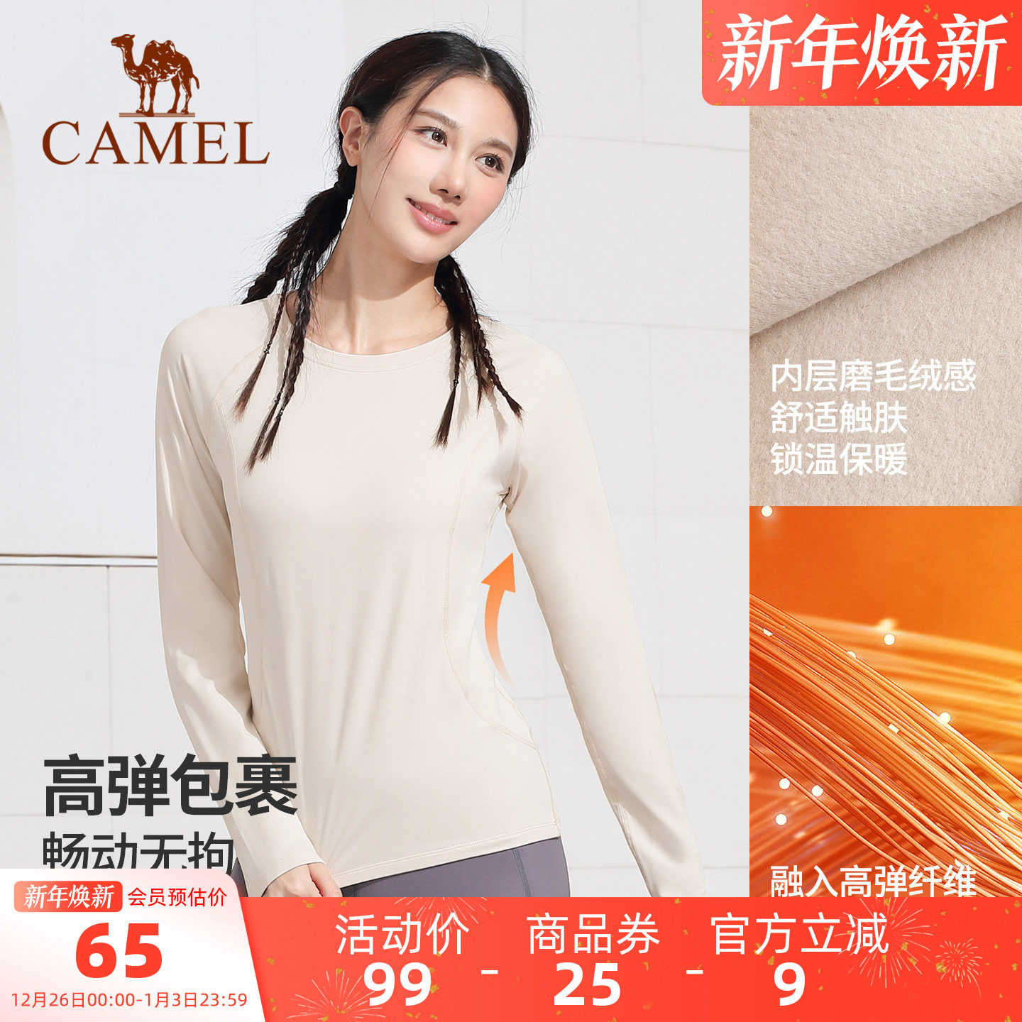 骆驼瑜伽T恤女款上衣秋跑步衣服休闲运动服紧身衣长袖修身健身服