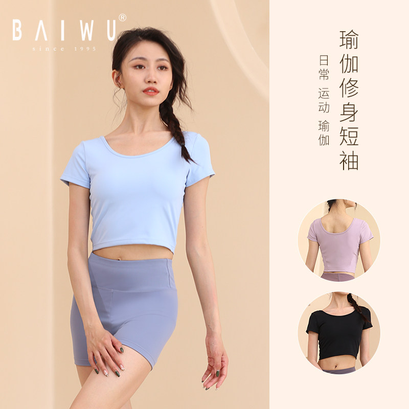 特价瑜伽服短袖女露腰运动T恤健身训练普拉提舞蹈运动高级跑步衣