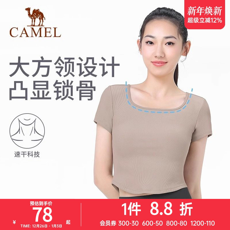 骆驼瑜伽服女款春夏季短袖透气速干跑步衣健身服上衣薄款运动t恤