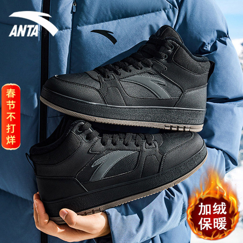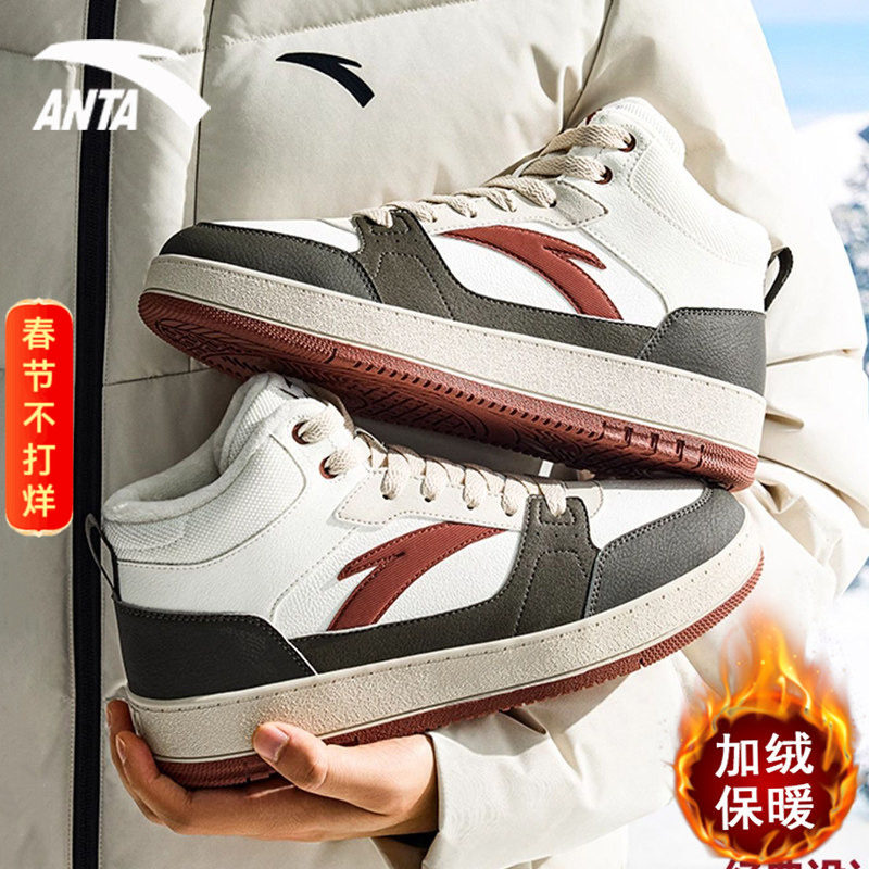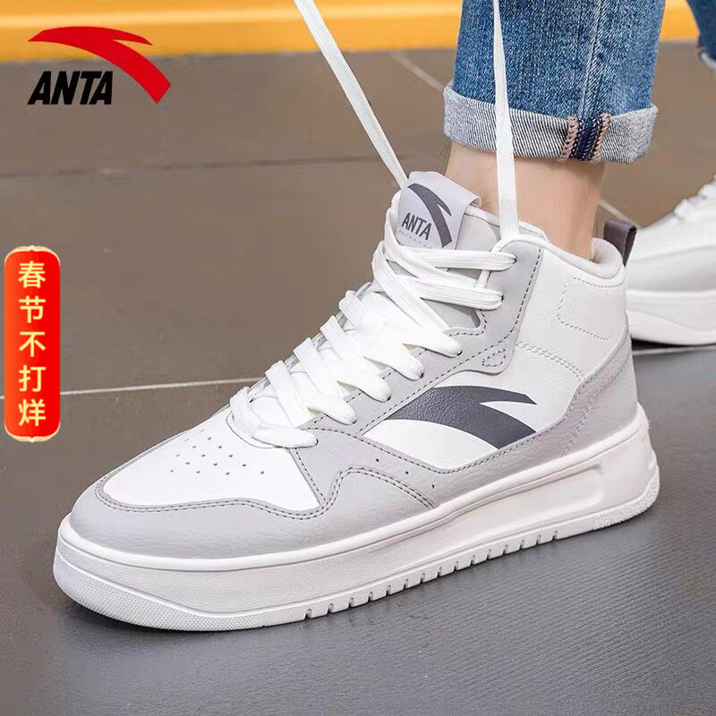 安踏男鞋加绒高帮板鞋皮面秋冬季2026新款男士休闲鞋高邦运动鞋子