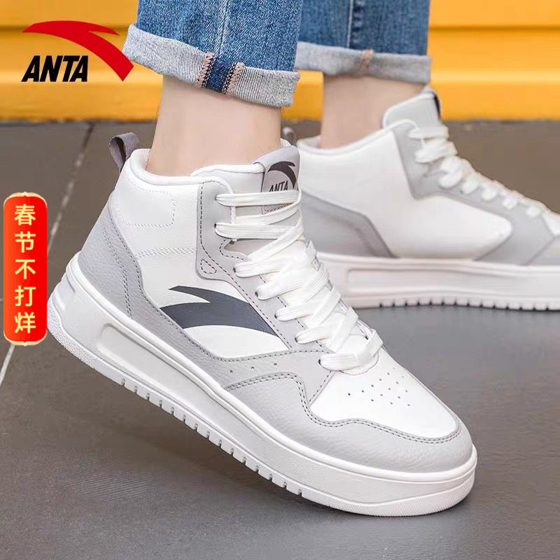 安踏男鞋高帮板鞋皮面秋冬2026新款滑板鞋旗舰店高邦休闲运动鞋子