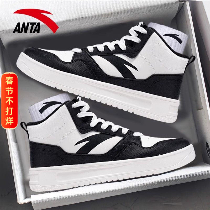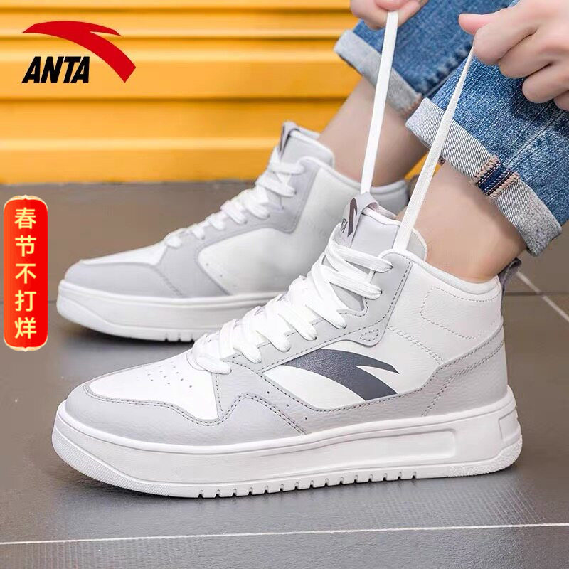 安踏男鞋高帮板鞋皮面软底秋冬2026新款男款高邦厚底休闲运动鞋子