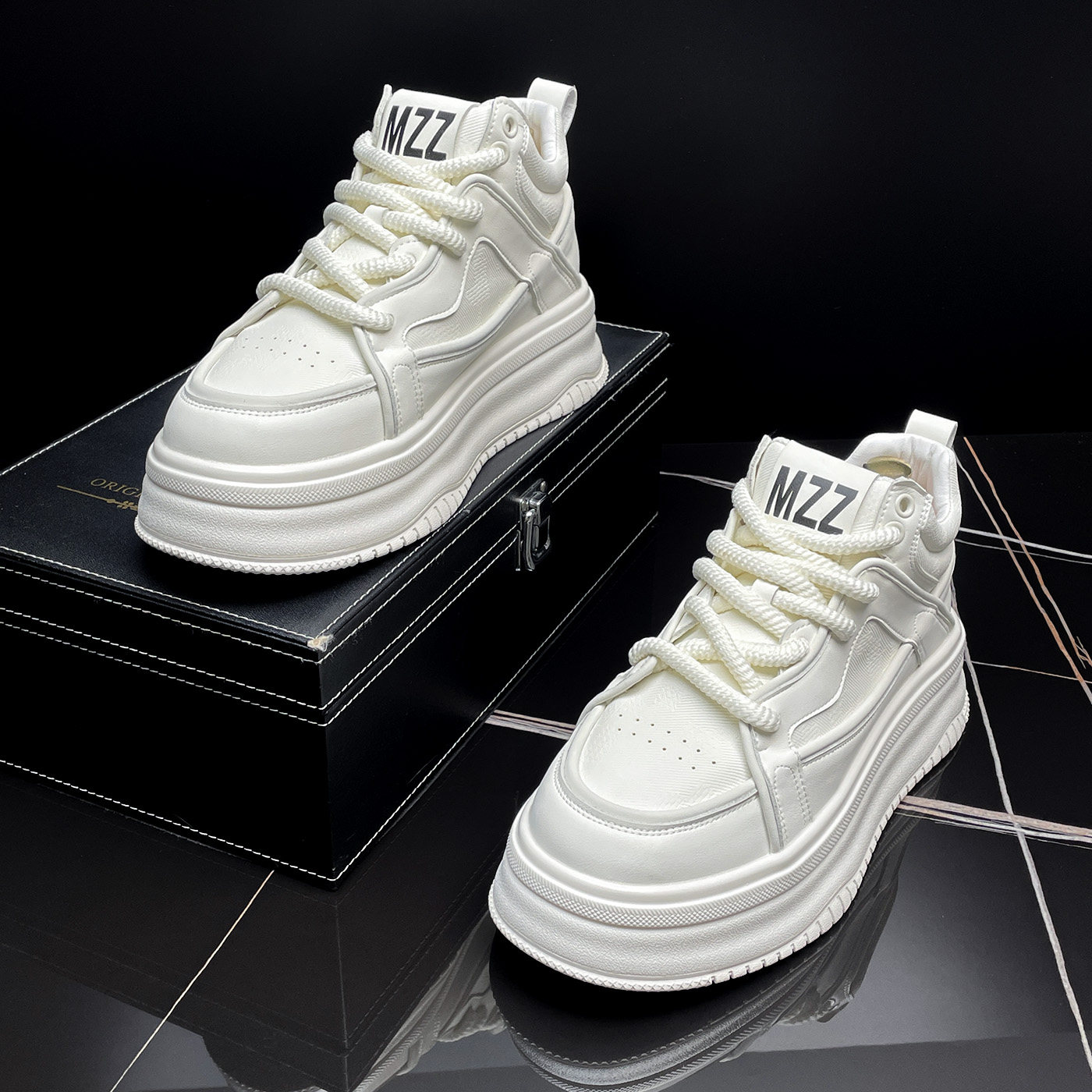 高帮板鞋男2025秋季新款厚底学生休闲小白鞋潮流高邦内增高运动鞋