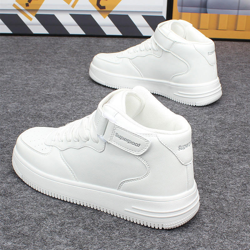 高帮小白鞋男款2025秋季新白色高邦板鞋舒适百搭男鞋厚底休闲鞋子