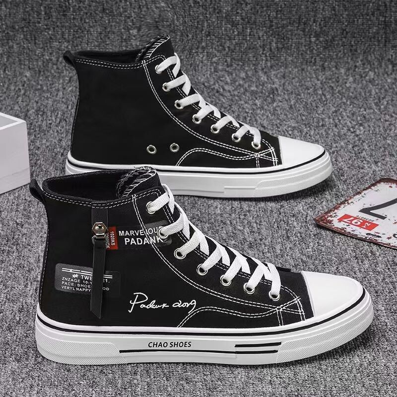 2025秋季新款高帮帆布鞋男黑色百搭休闲潮鞋学生布鞋高邦潮流板鞋