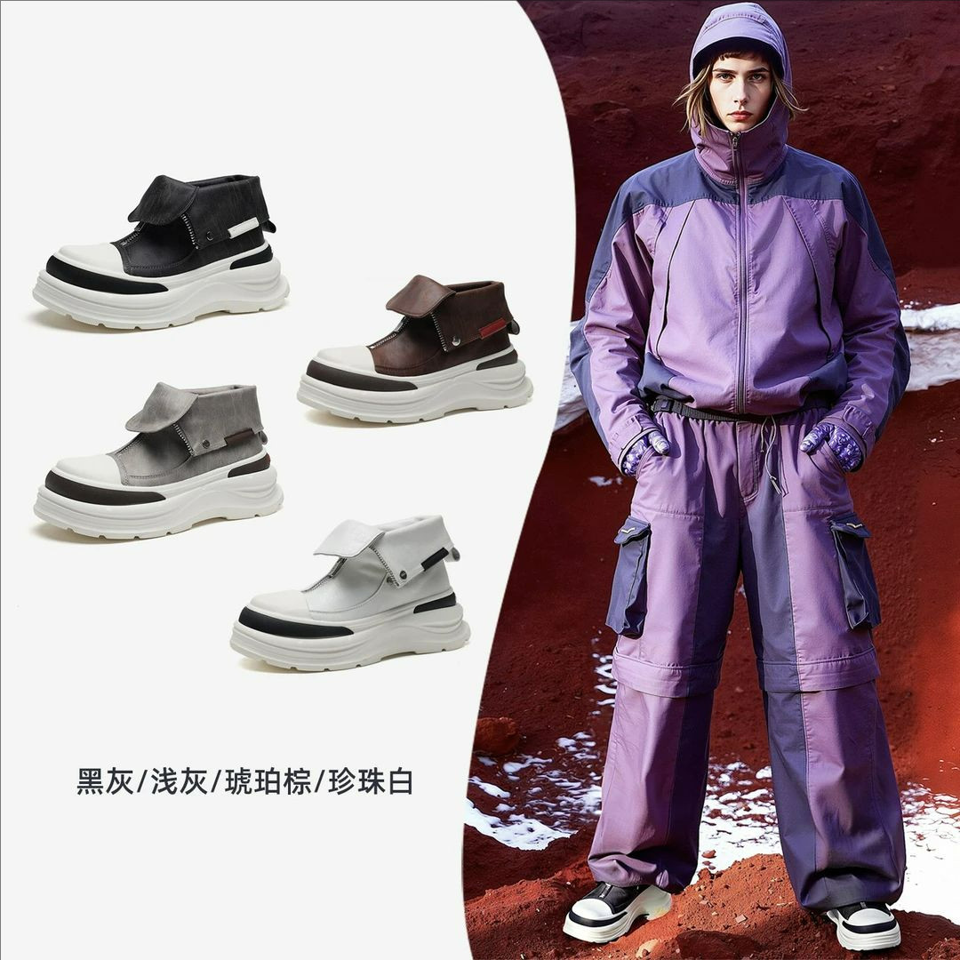 马克华菲加绒高邦两穿男鞋秋冬爆款机车男士增高厚底百搭休闲板鞋