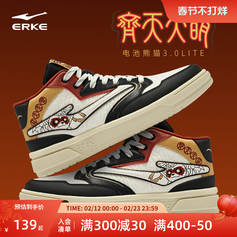 鸿星尔克高帮板鞋男电池熊猫3.0复古休闲鞋高邦厚底运动鞋男板鞋