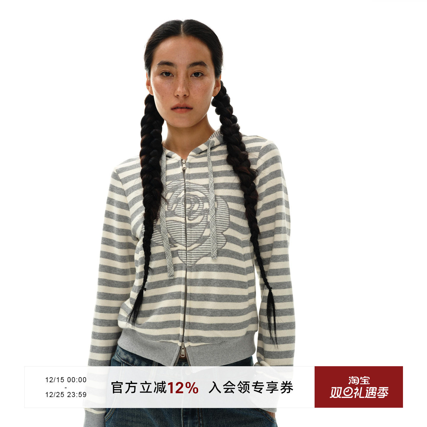 INSstudios 国潮牌美式「花朵刺绣短款卫衣」宽松休闲开衫外套女