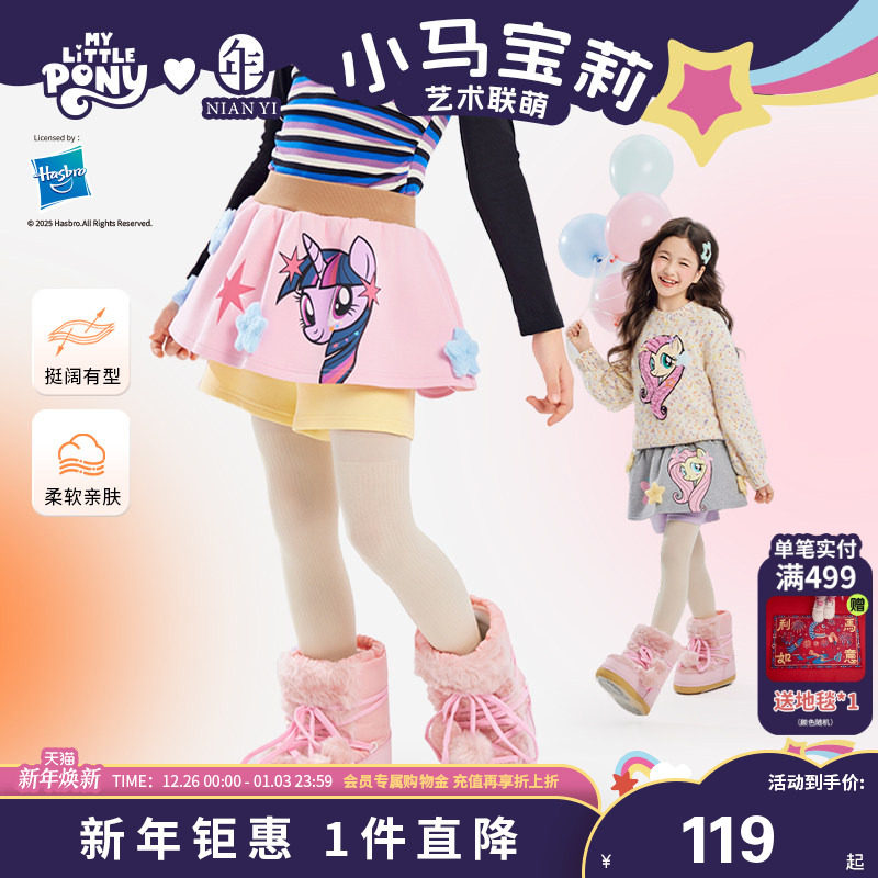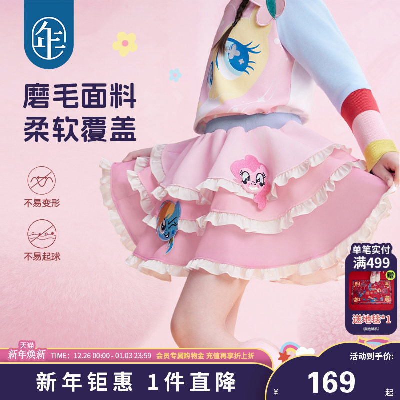 小马宝莉联名年衣童装半身裙秋冬新款女童卡通学院风百褶半裙短裙