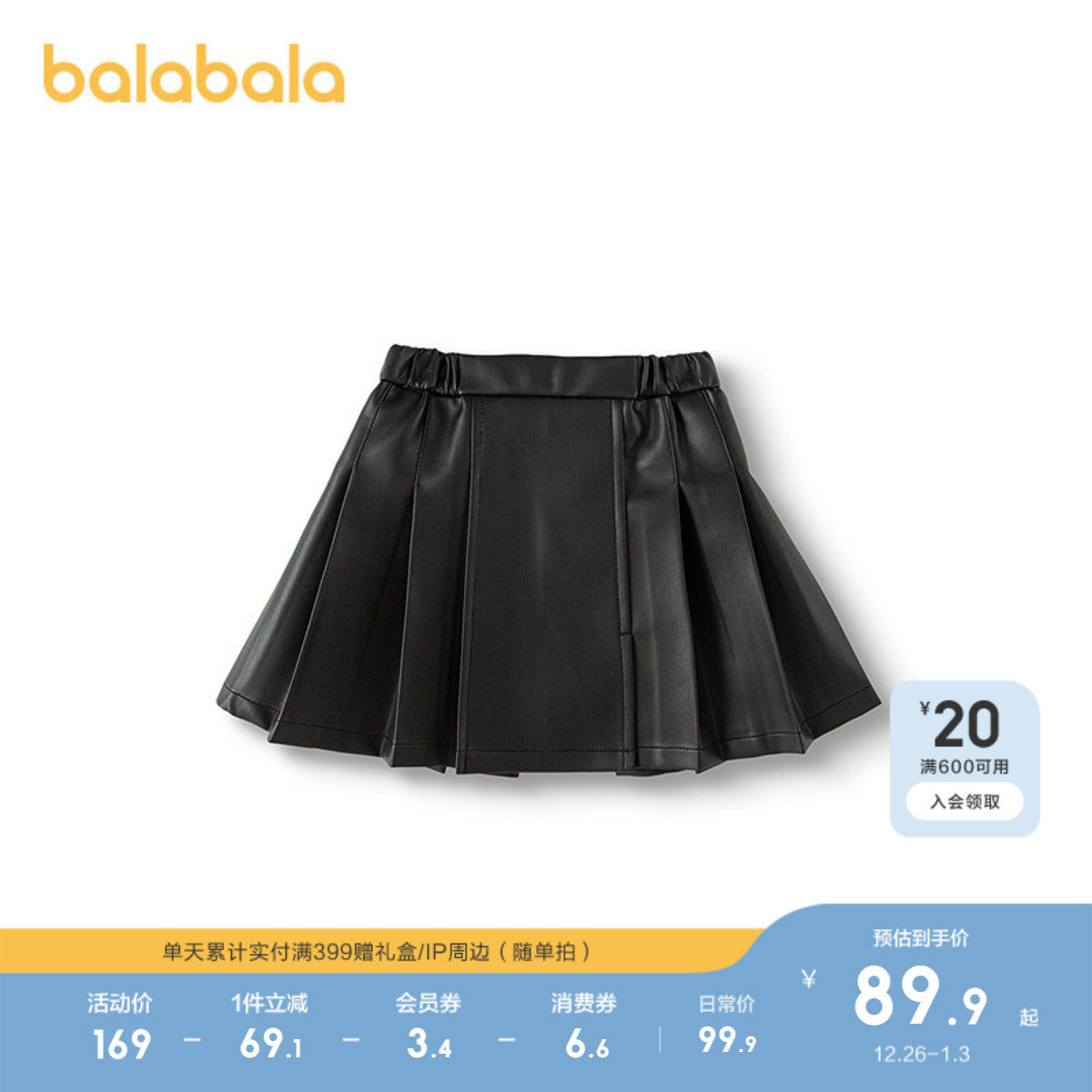 巴拉巴拉童装女童短裙甜酷时髦仿皮裙秋冬百褶裙儿童宝宝裙子洋气