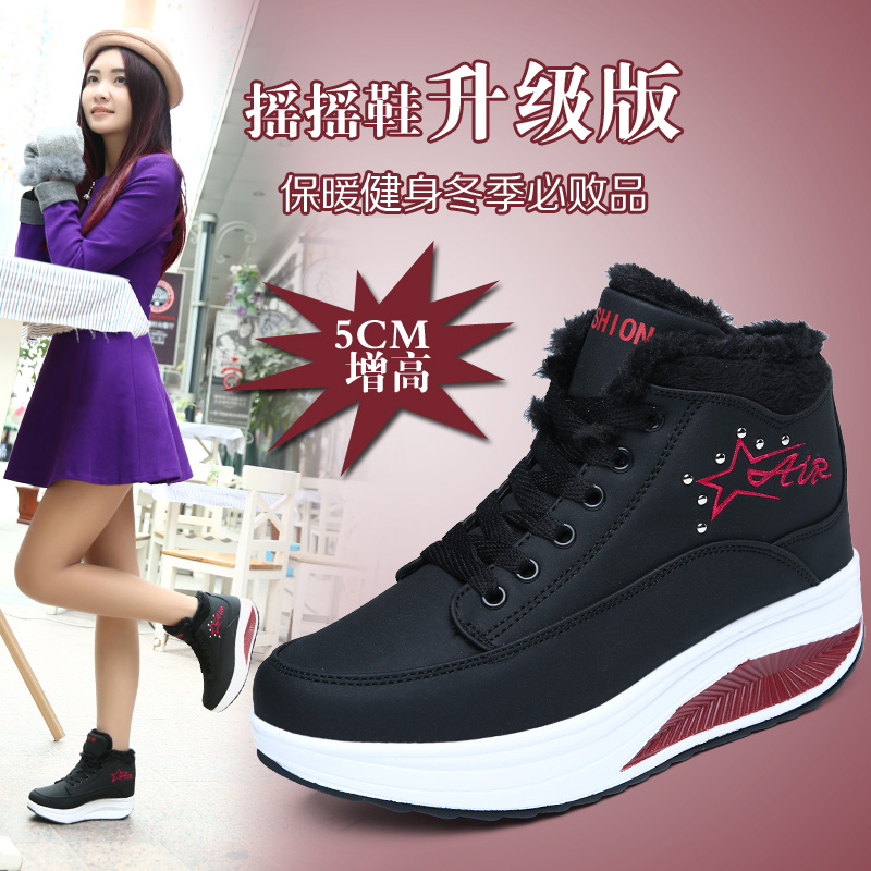冬款加绒摇摇鞋冬鞋女松糕厚底鞋坡跟女鞋高帮鞋雪地鞋运动棉鞋女