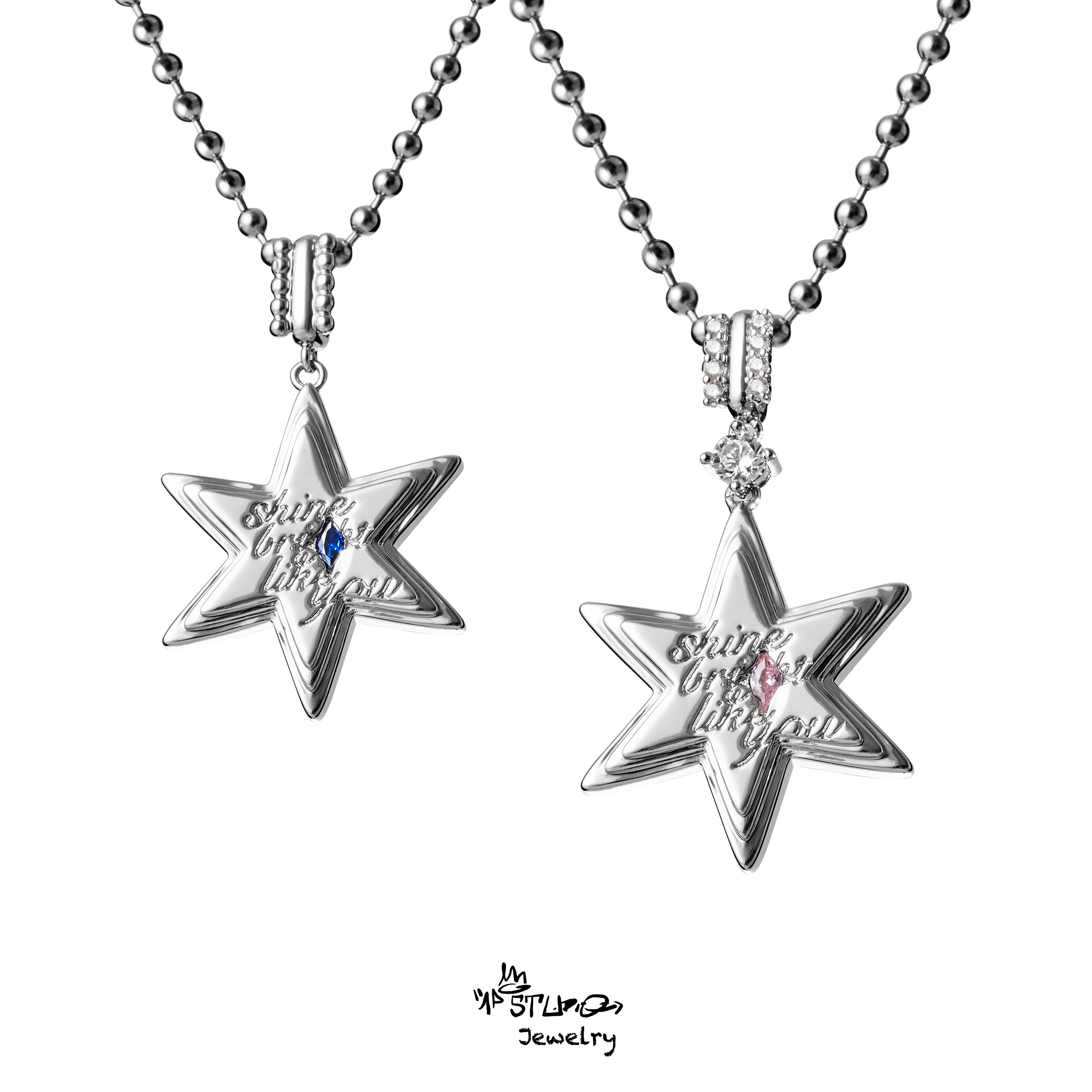 1P JEWELRY情侣粉蓝锆石星星六芒星圆珠链项链情人节七夕圣诞礼物