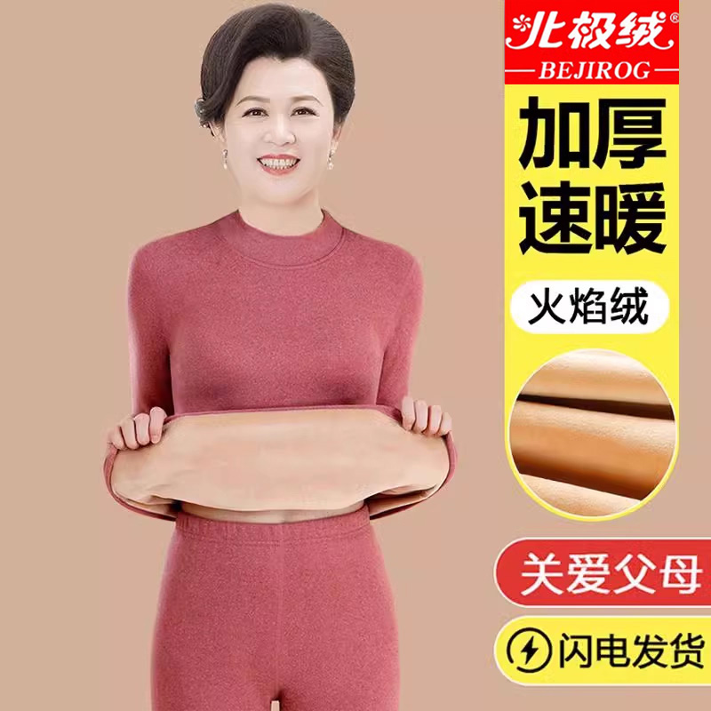 北极绒保暖内衣女中老年妈妈中高领冬季加绒加厚秋衣秋裤内穿套装