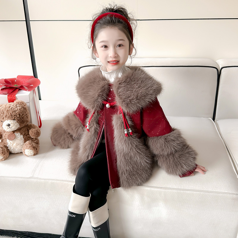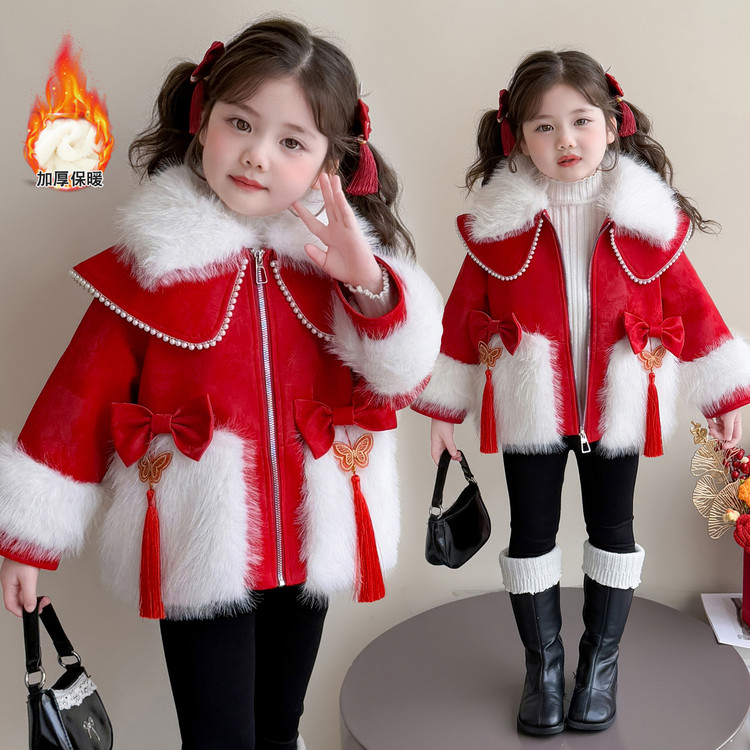 • 女童仿皮草中国风毛毛外套2025新款秋冬季儿童冬装加绒加厚女宝宝