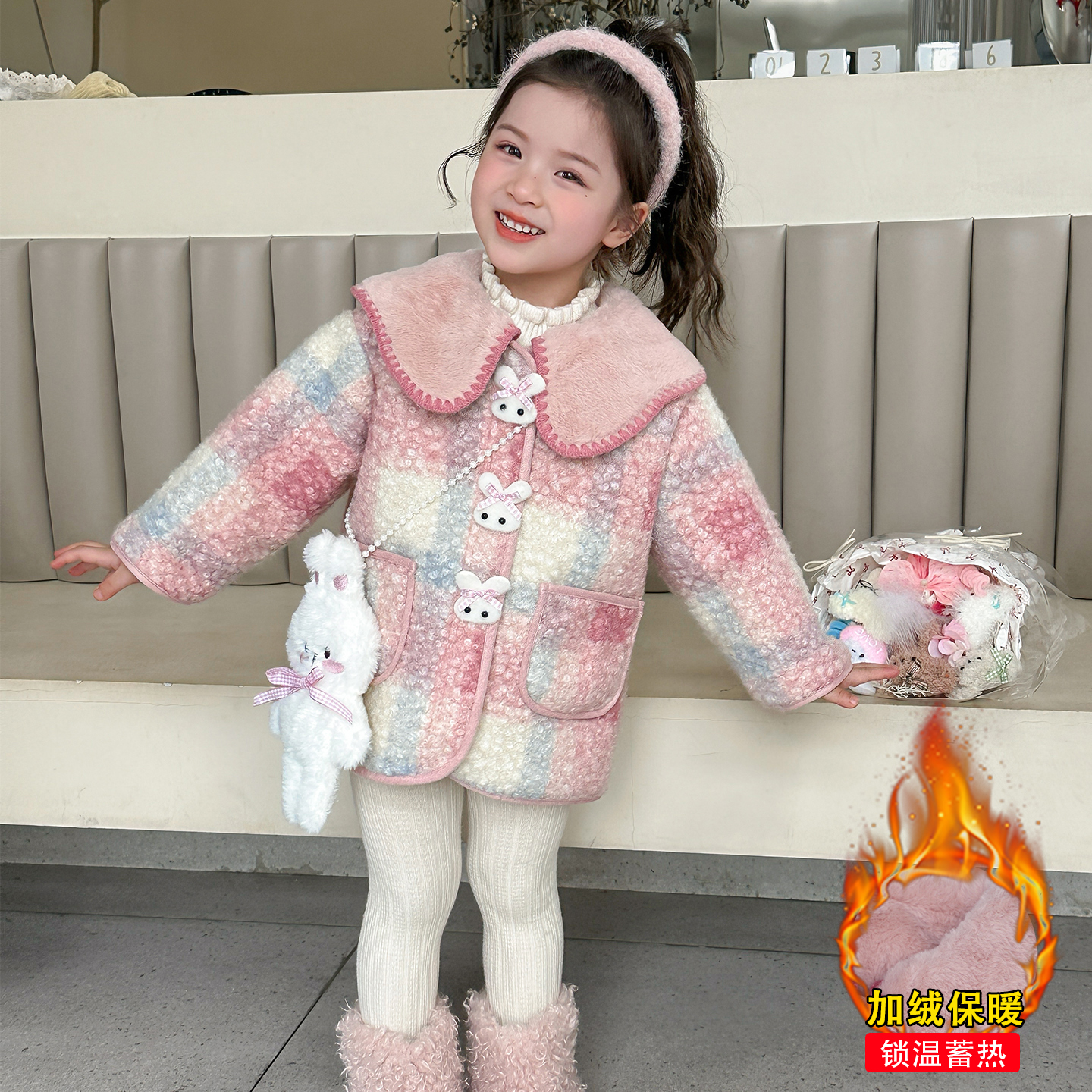 • 女童外套秋冬装2025新款女宝宝夹棉加厚仿皮草上衣儿童洋气毛毛衣