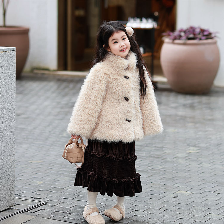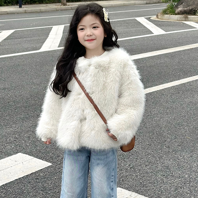 • 儿童仿皮草外套2025秋冬新款女童毛毛大衣时髦加厚保暖女宝宝外套