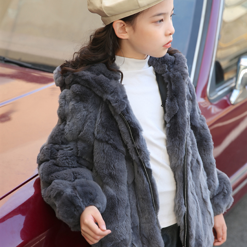 • 2025冬季女童獭兔毛棒球帽拉链衫中大童皮毛一体女宝宝真皮草外套