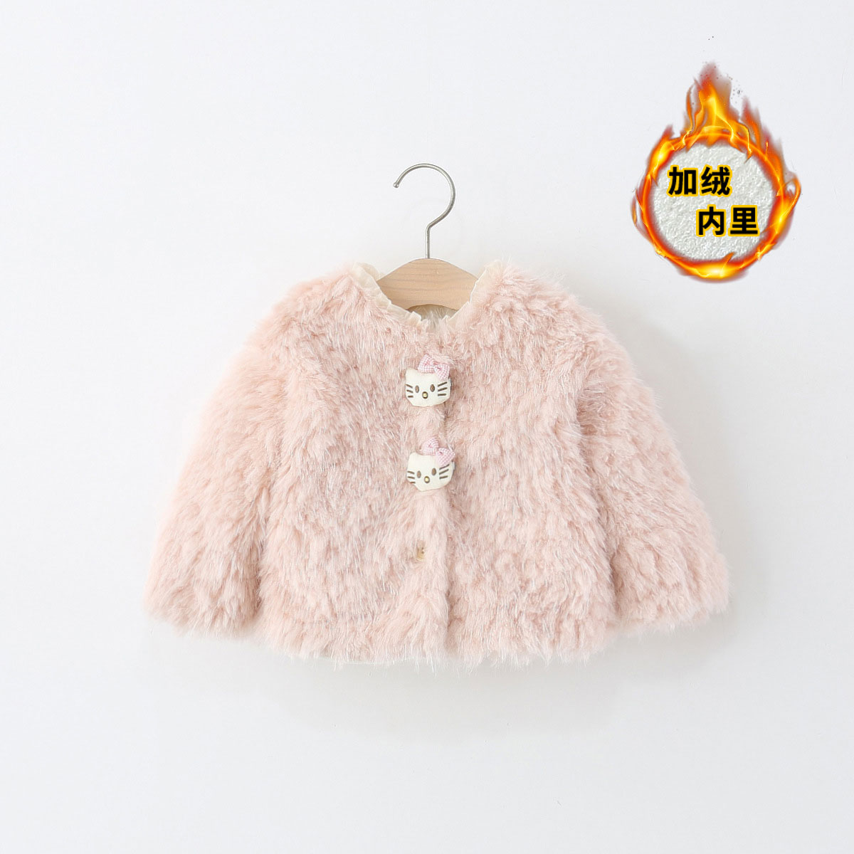 • 童装女童仿皮草外套冬季加绒婴儿童女宝宝卡通保暖毛毛衣小童冬装