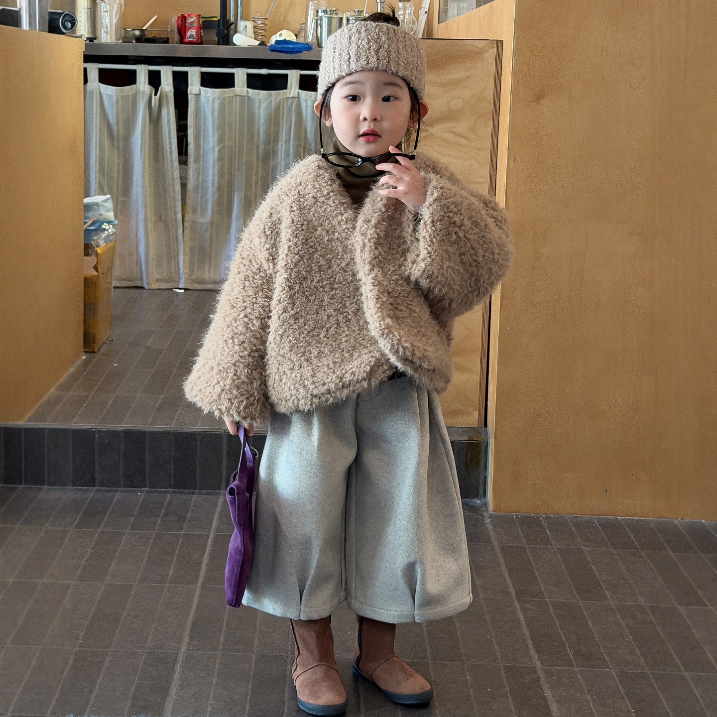 • GLP KISS女童冬款外套25新女宝宝气质娃娃领仿皮草宽松毛毛外衣潮