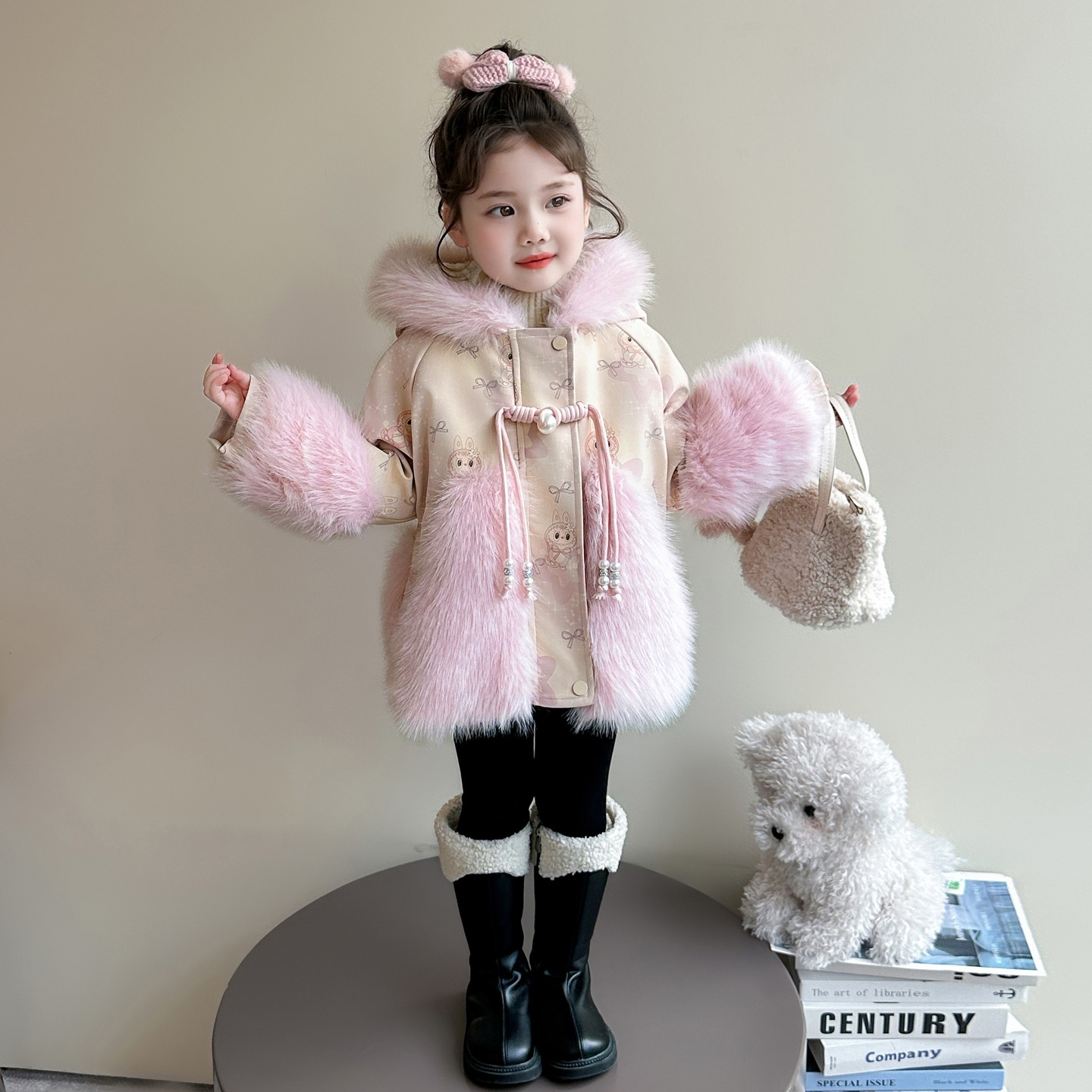 • 女童冬季外套2025款卡通皮草外套冬季新款洋气女宝宝加绒加厚外套
