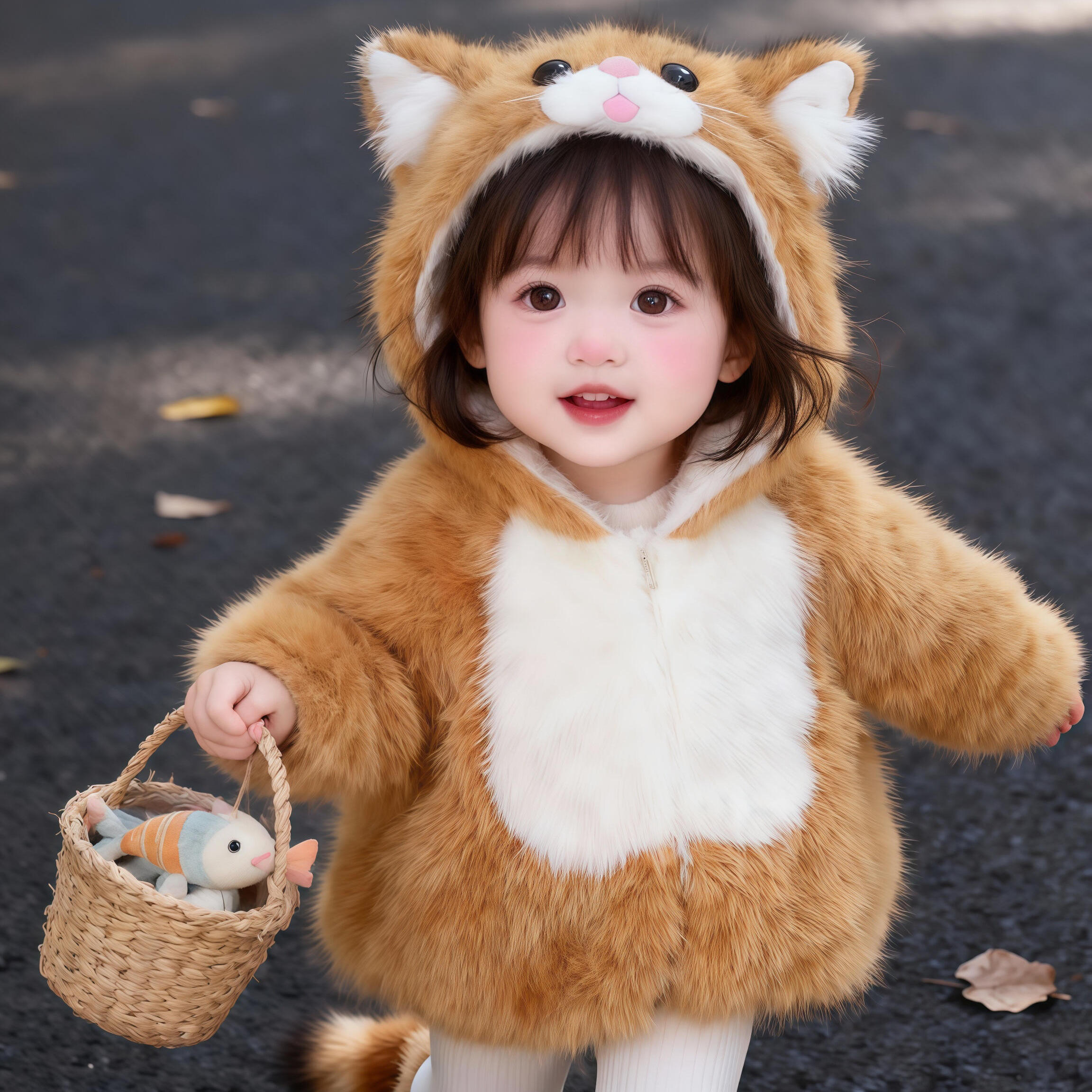 • 新款女童可爱小猫连帽毛绒外套加绒加厚仿皮草女宝宝卡通风保暖冬
