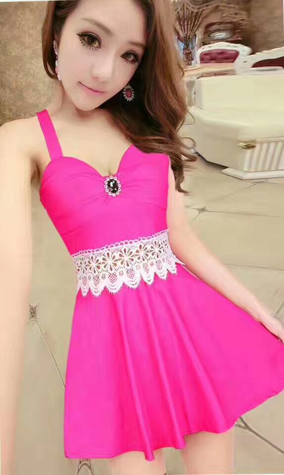 允硕新品时尚露肩荷叶边高腰气质修身女夏季遮胯圆领连衣裙569435