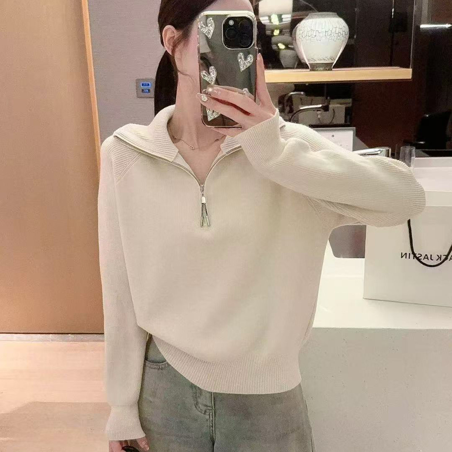 慵懒风半拉链翻领毛衣女宽松显瘦百搭针织衫软糯套头衫2025冬季款