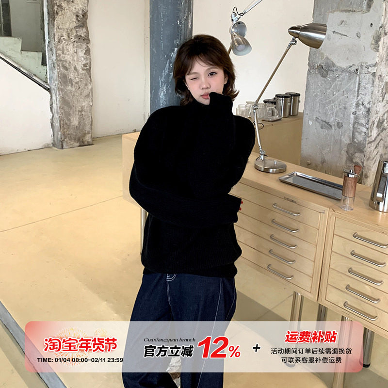 MULVAN黑色高领毛衣女外穿秋冬宽松显瘦慵懒风套头内搭针织衫上衣