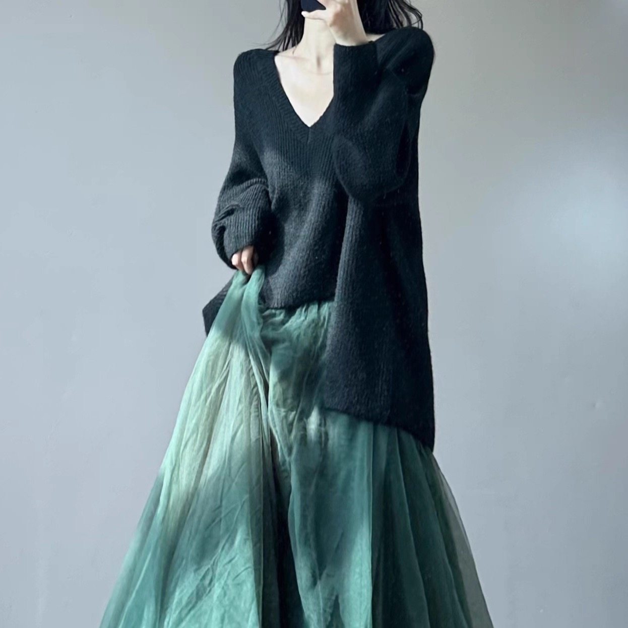 新款羊绒衫女慵懒随性显瘦 廓型V领毛衣宽松套头中长款针织衫时尚