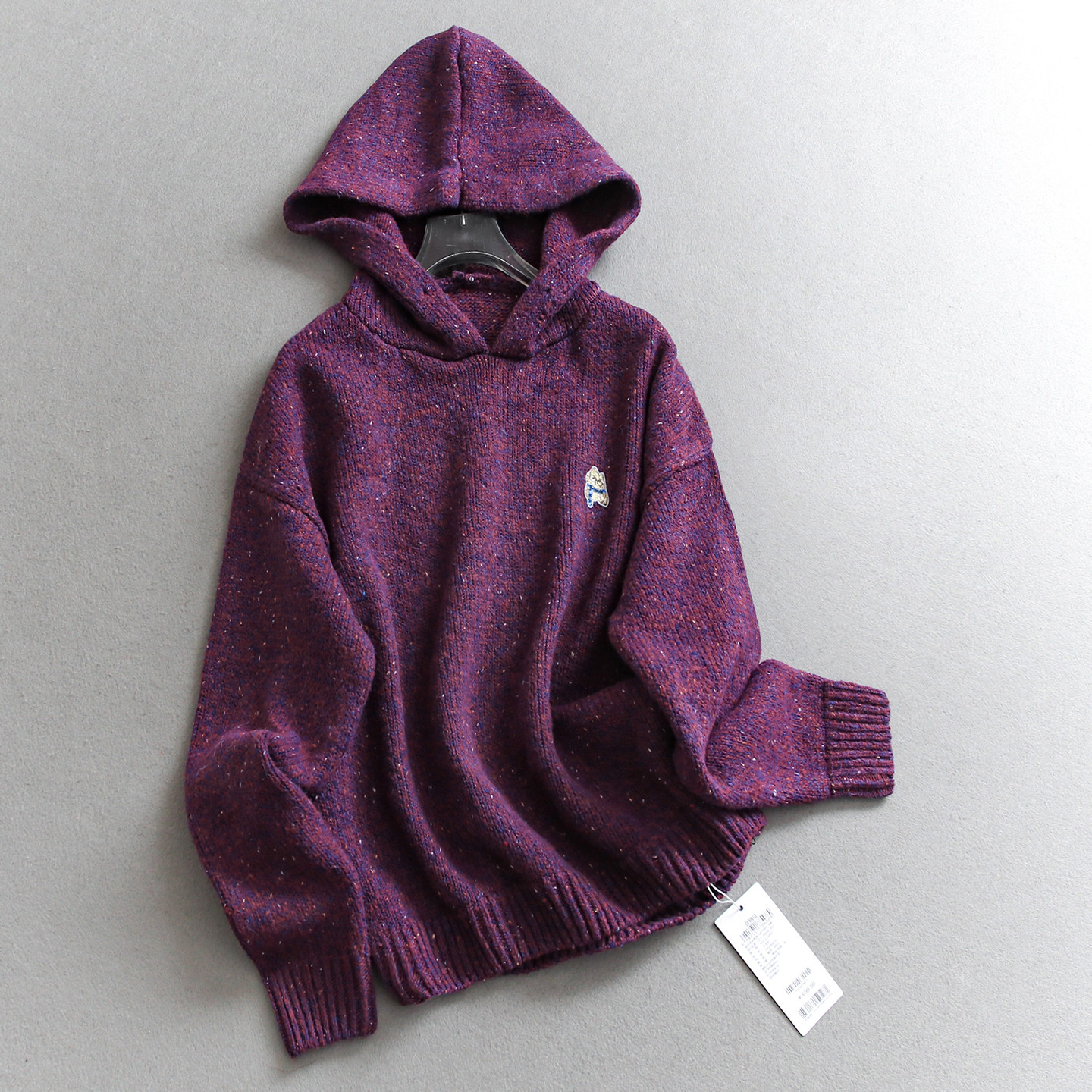 卡通刺绣宽松显瘦慵懒连帽保暖套头针织衫长袖减龄百搭女毛衣Q712