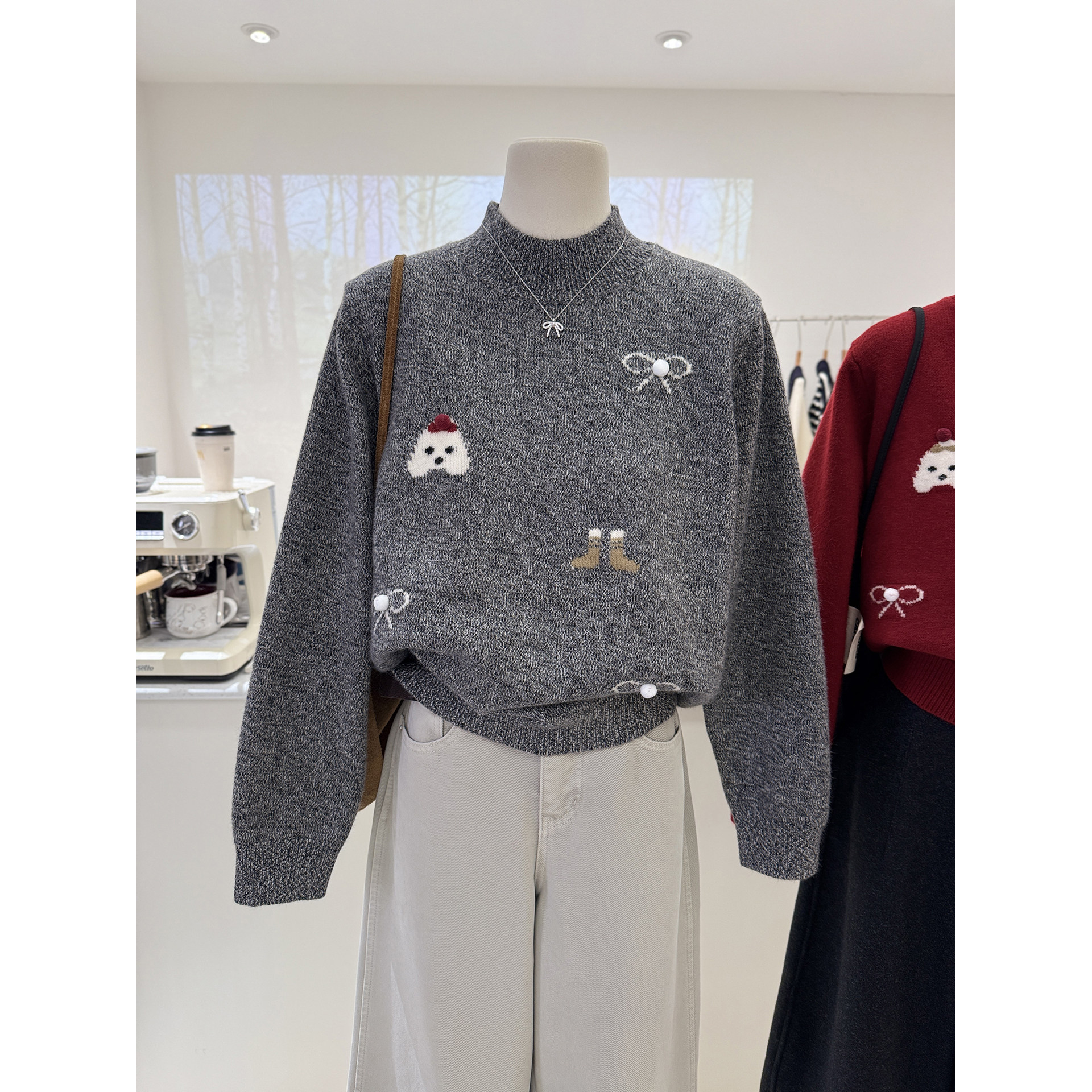 半高领圣诞趣味提花软糯慵懒休闲宽松显瘦韩系长袖套头针织毛衣女