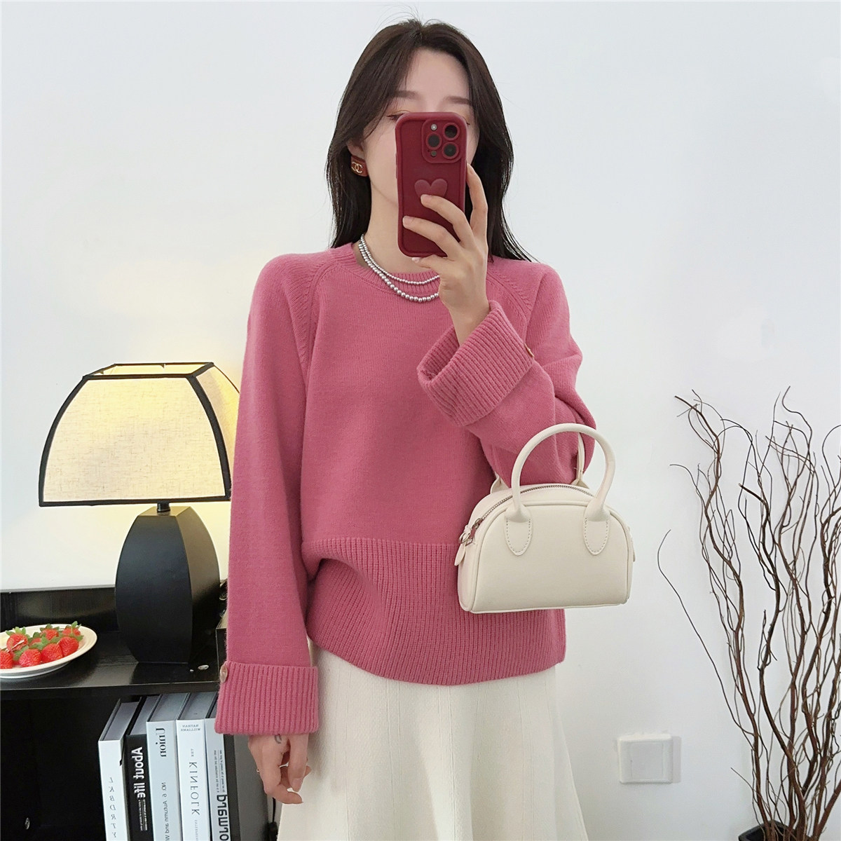 慵懒风复古软糯圆领套头毛衣女秋冬新款宽松百搭显瘦叠穿针织上衣