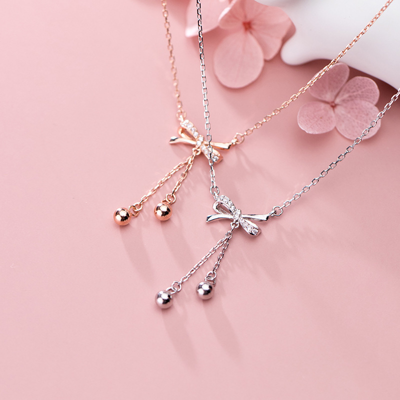 越南沙金项链女999纯金色18K镀黄金蝴蝶结花朵吊坠锁骨链镀金首饰