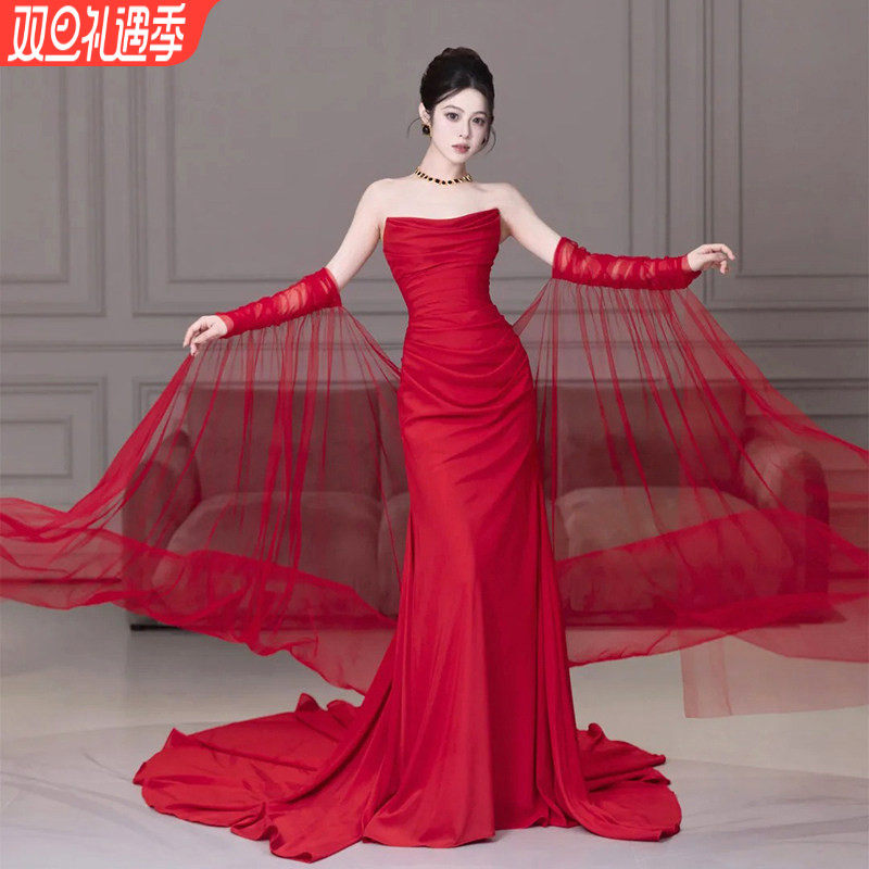 - 红色礼服长款