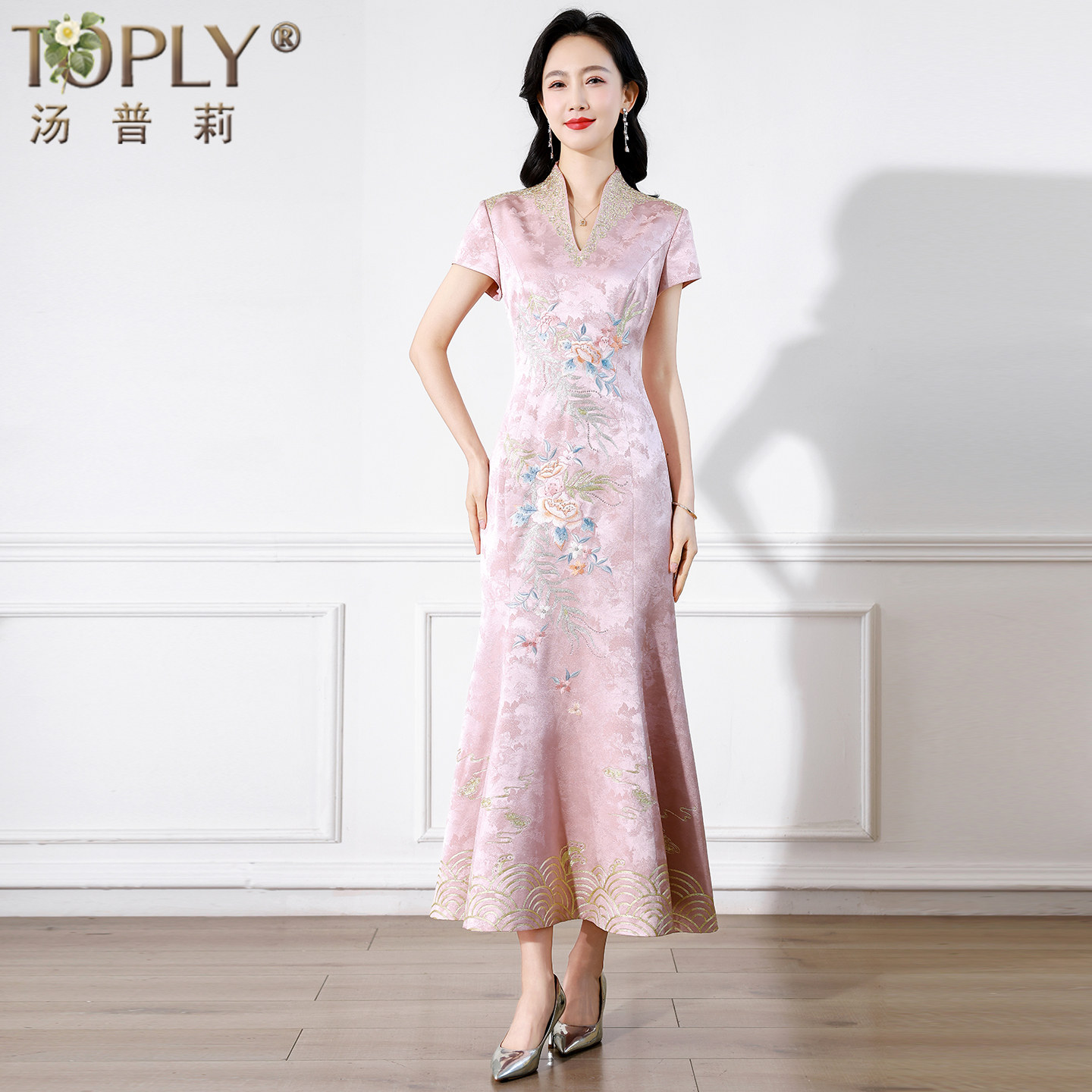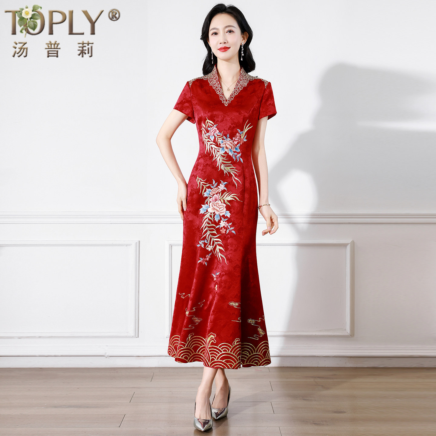 多丽琦新款改良旗袍裙宴会轻奢主持礼服喜妈妈婚宴敬酒服优雅长裙