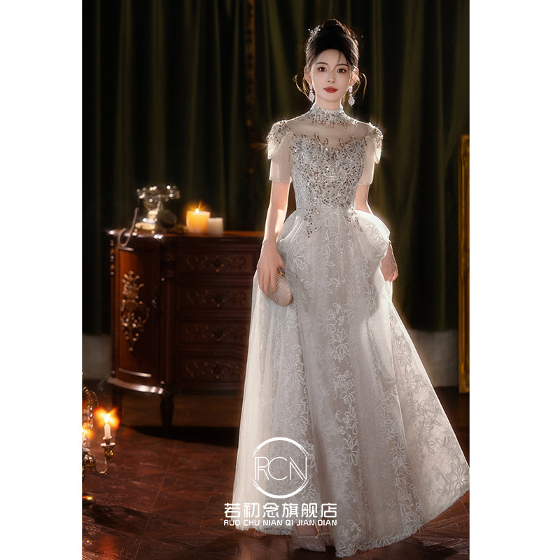 主持人晚礼服裙女2026高端轻婚纱订婚敬酒服晨袍高级感艺考成人礼