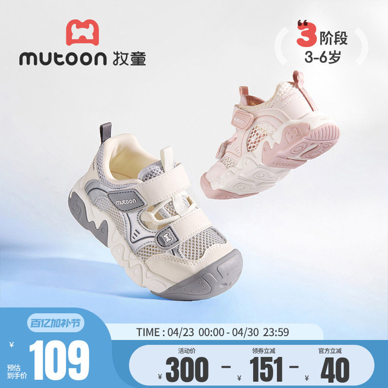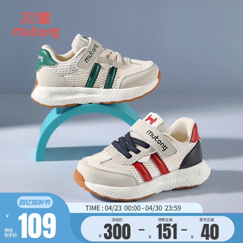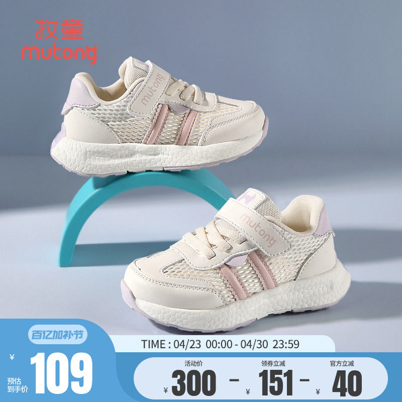 【奥莱断码清仓】牧童春夏儿童鞋男透气网运动鞋女轻便减震跑步鞋