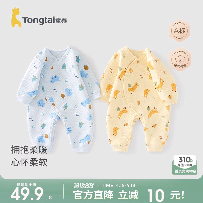 童泰婴儿连体衣秋冬季保暖宝宝衣服家居内衣偏开长袖夹棉哈衣爬服