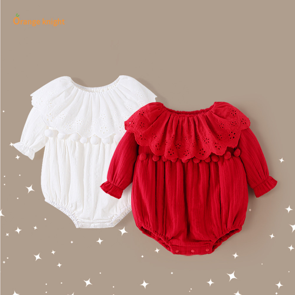 小月龄婴儿秋冬季衣服甜美荷叶领长袖包屁衣新生儿女宝宝满月礼服