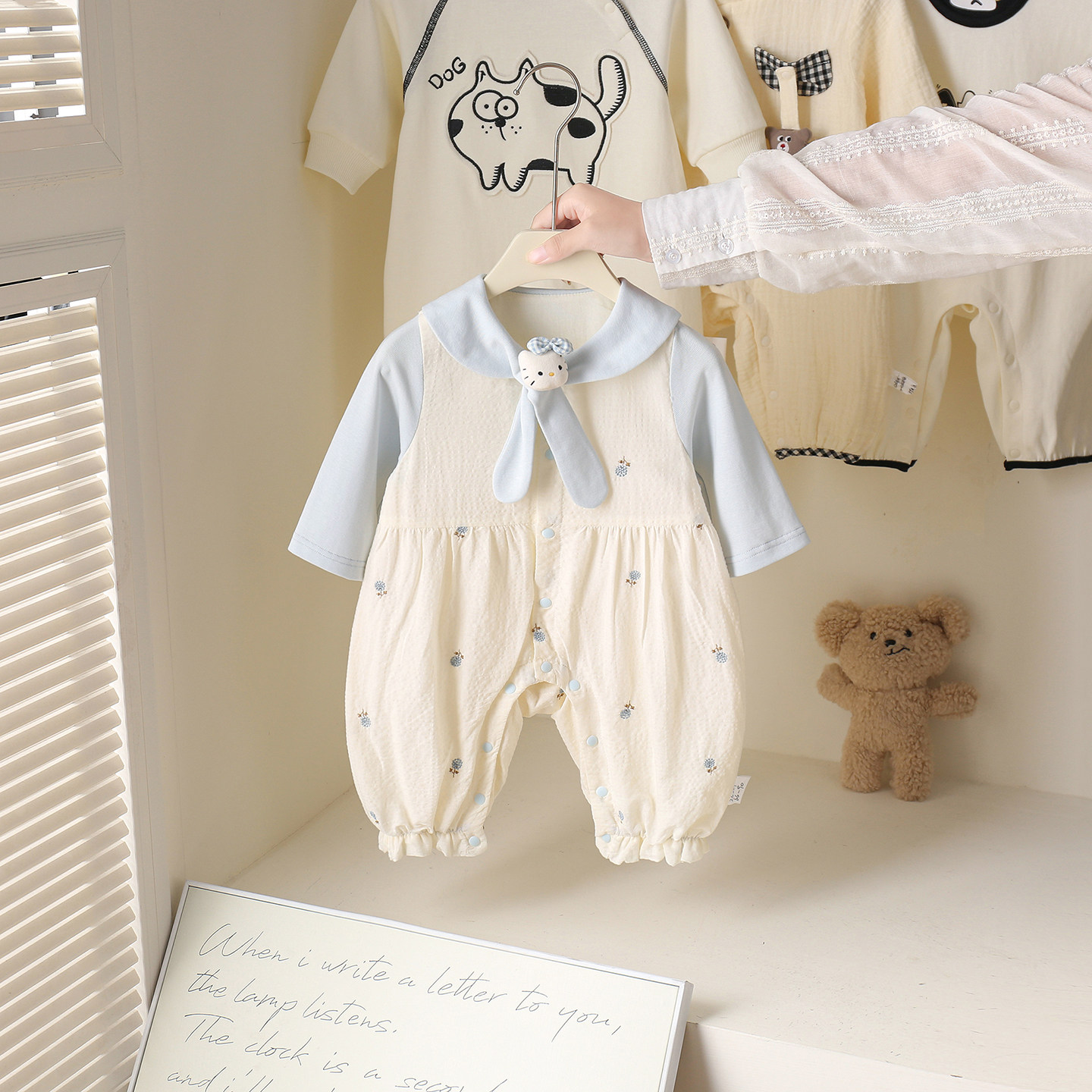婴儿纯棉连体衣宝宝四季款哈衣长袖爬服男女童秋冬季外出服打底衫