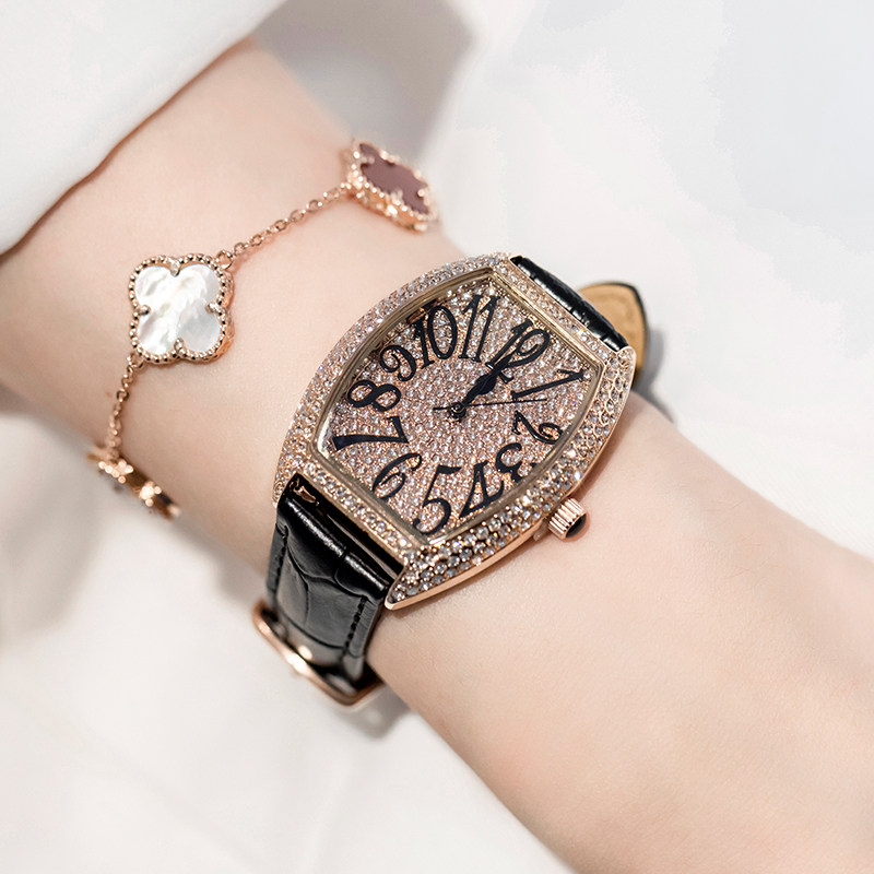轻奢满钻手表女彩色数字酒桶形镶钻时尚女款皮带法兰克FM女士潮表