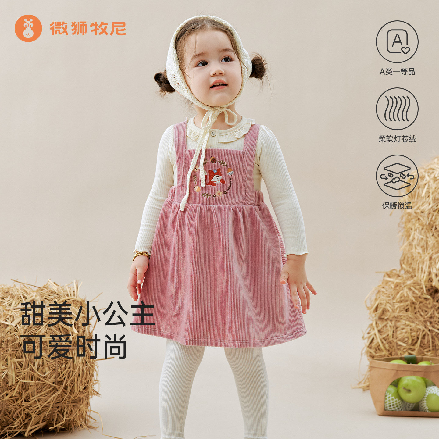 微狮牧尼女宝宝背带连衣裙秋冬季婴儿裙子灯芯绒女童衣服百搭甜美