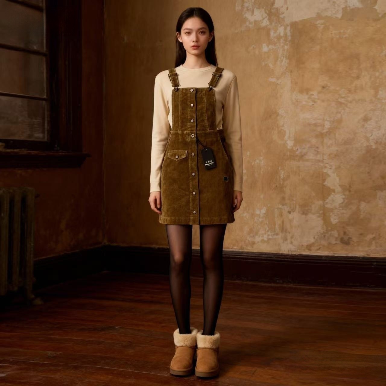 撤柜奥特莱斯清仓捡漏灯芯绒背带裙女秋冬新款气质休闲百搭中长裙
