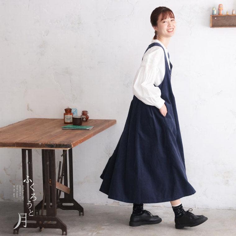 初原家日系灯芯绒连衣裙女款长裙条纹背带裙秋冬款背心裙大码女装